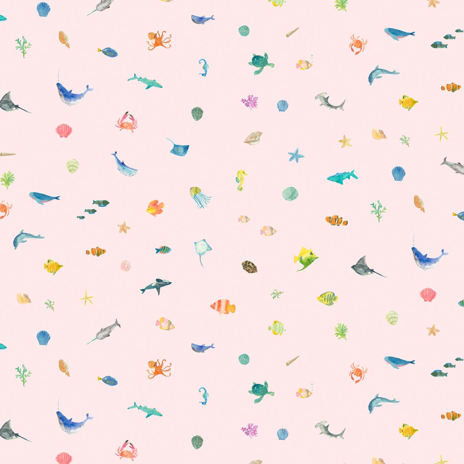 Painted in intricate watercolour detail, the designs are full of interesting aquatic creatures and treasures. Beautiful shoals of colourful fish, pretty seahorses and friendly sharks swim across the fabrics.