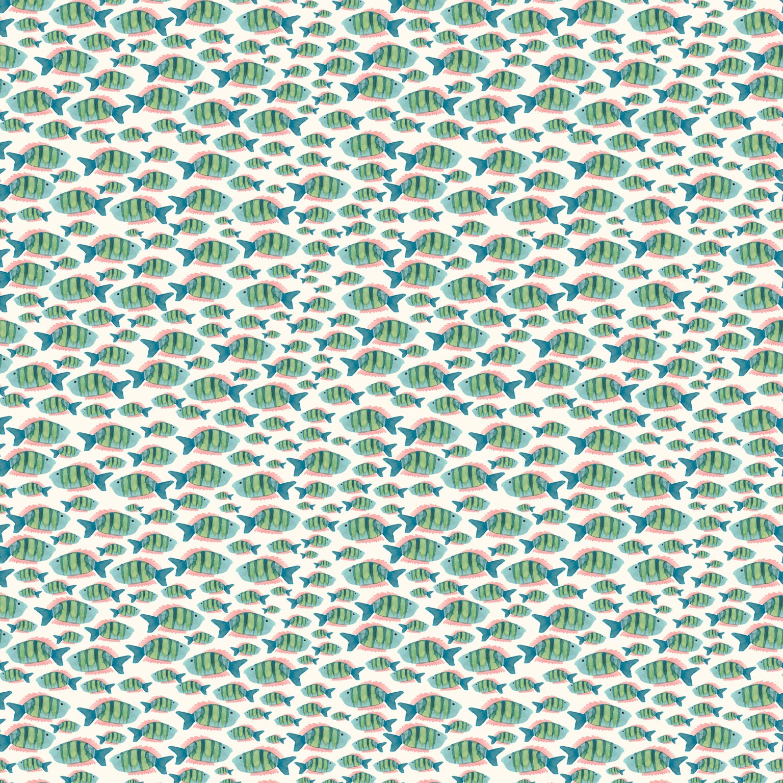 Painted in intricate watercolour detail, the designs are full of interesting aquatic creatures and treasures. Beautiful shoals of colourful fish, pretty seahorses and friendly sharks swim across the fabrics.