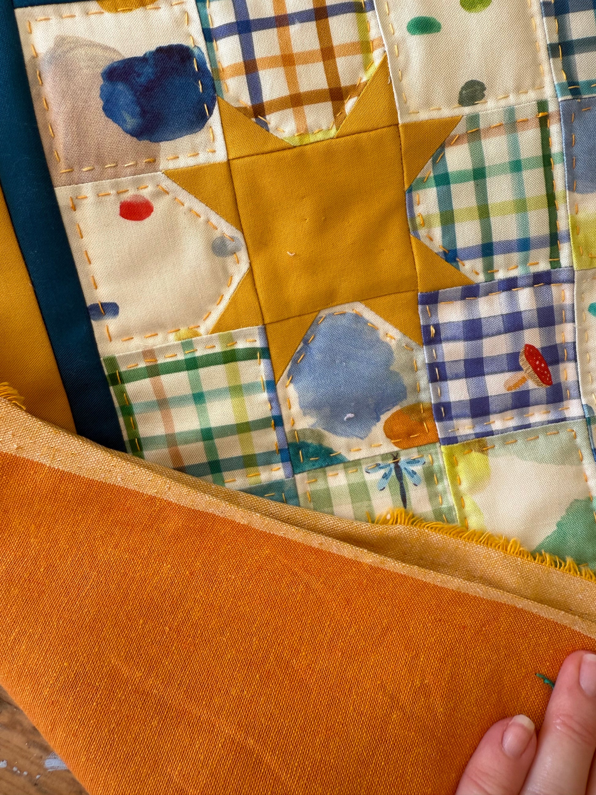 Light the way for our little explorers. I've used golden stars on a bed of sweet garden prints from Weebluebell fabrics